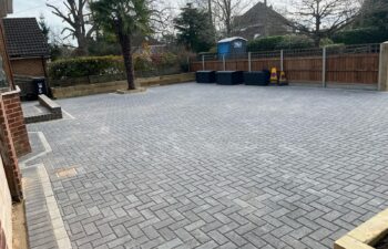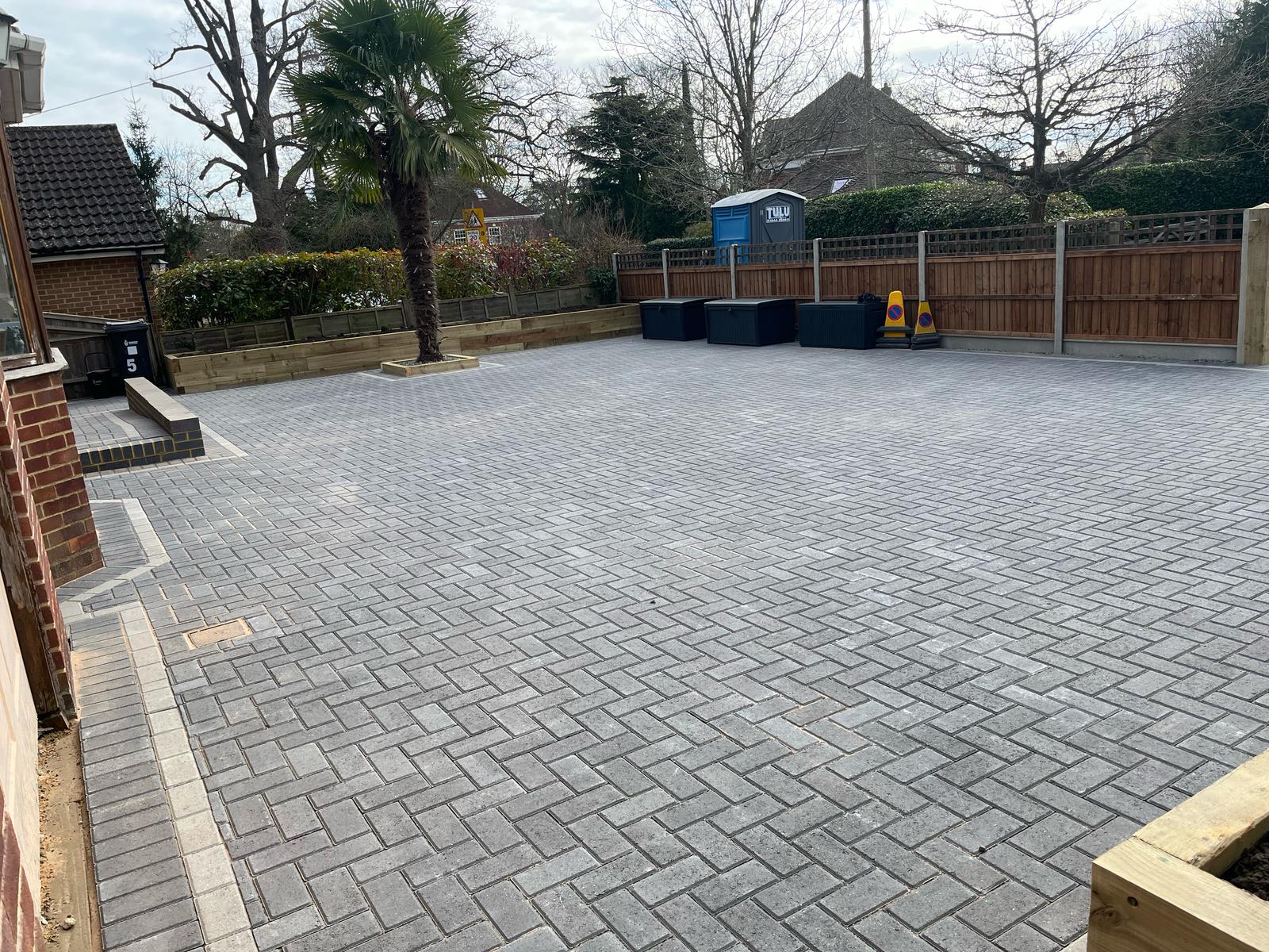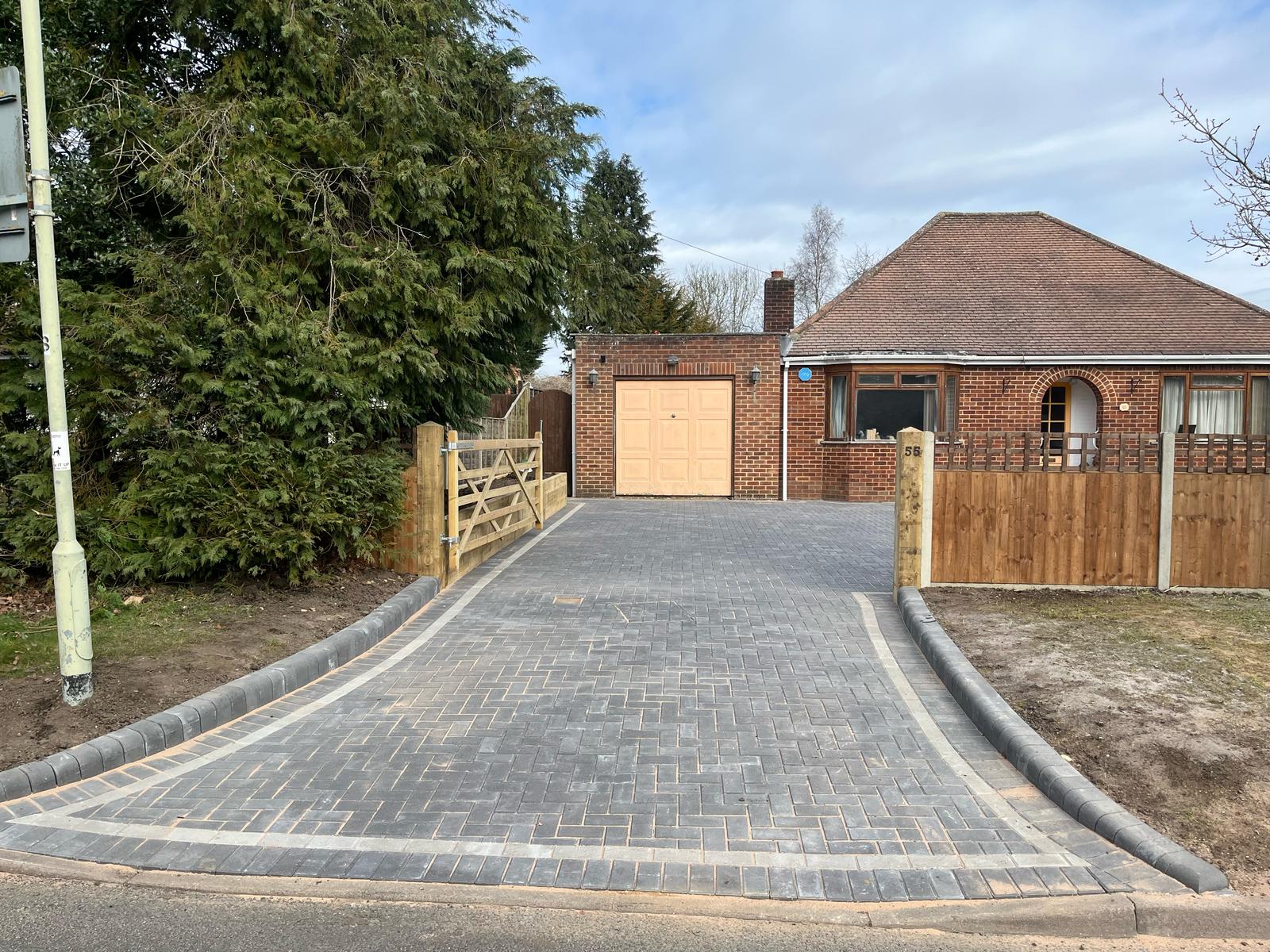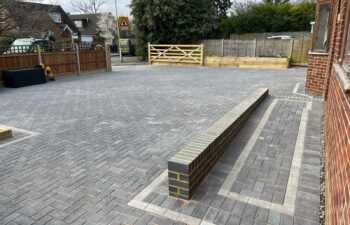 Block Paving Installation: We laid durable charcoal block paving across the entire driveway area. To add a sophisticated touch and visual detail, we incorporated a contrasting light grey pencil line border, enhancing the clean lines of the design. This professional paving significantly improves the home’s immediate presentation and value.