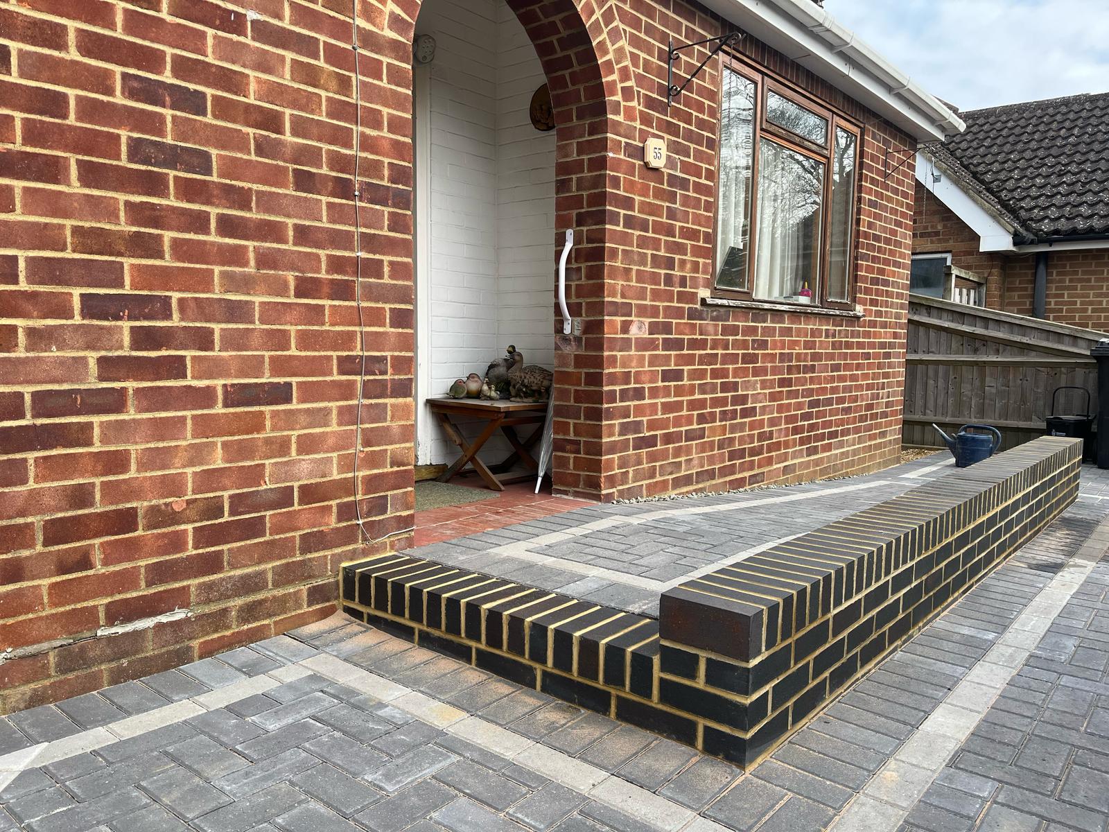Disabled Access Ramp: A critical element of the design was the installation of a safe and compliant disabled access ramp leading to the front door. We ensured the gradient and finish met all safety standards, seamlessly integrating the ramp into the overall brickwork and paving scheme.